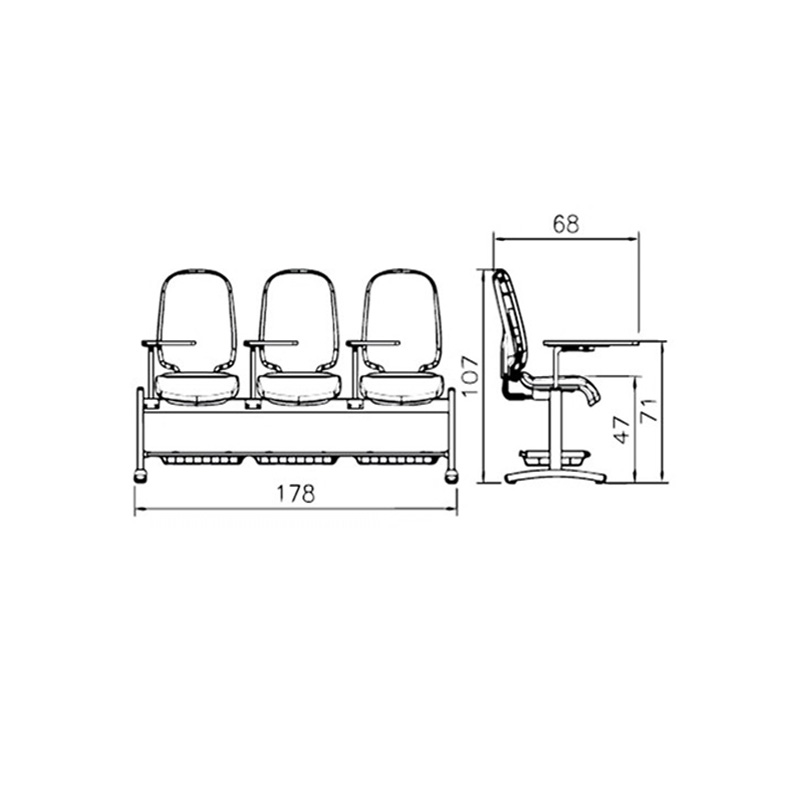 صندلیهای آموزشی اغلب به صورت دو یا سه نفره طراحی و تولید و عرضه میشوند و شامل بخشهای نشیمن، پشتی و میز متصل هستند. داشتن این ساختار یکپارچه، علاوه بر صرفهجویی کردن در فضای مورداستفاده، باعث نظم و انسجام محیط نیز میشود. بعضی از مدلها دارای فضای ذخیرهسازی زیر نشیمن و یا قلابهایی برای آویزان کردن کیف هستند که کاربری آنها را مناسبتر میکند.