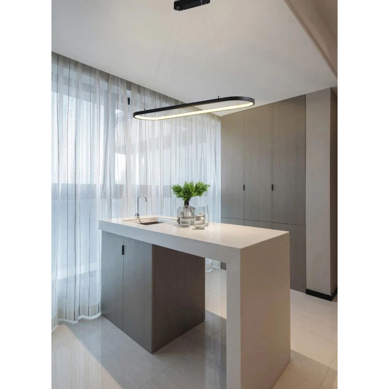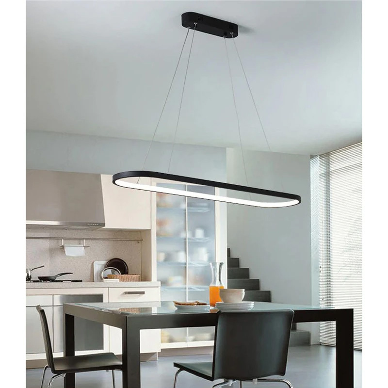لوستر آویز مدرن ، در ابعاد۲x۳۰x۱۲۰ سانتی متر میباشد ، که با بدنه مشکی ارائه شده و در سه نوع رنگ نور افتابی ،مهتابی و روشن شدن هردو همزمان( چند رنگ ) ارائه میشود و قابل انتخاب میباشد. ارتفاع لوستر از ۲۰ سانت تا ۹۰ سانت قابل تغییر است، همچنین میتوانید چیدمان لوستر را از ، به طبقاتی ویا کهکشانی تغییر دهید . با ریموت و اپلیکیشن موبایل میتوانید نور لوستر را کم وزیاد، و خاموش و روشن ، و یا به حالت شب تغییر بدهید .