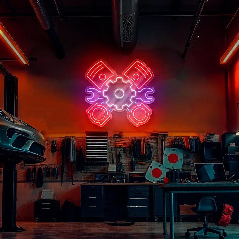 برای انواع تعمیرگاهها، فروشگاههای لوازم یدکی خودرو و موتور و یا برندهای تیونینگ، تابلوهای نئون فلکسی با لوگو و طرح اختصاصی خودرو جلوهای جذاب ایجاد میکنند.