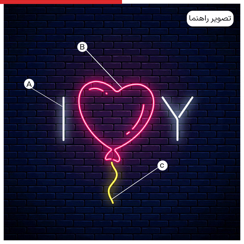توجه: لطفا برای سفارش سازی رنگ نور و یا سفارش با ابعاد مختلف با واحد فروش تماس حاصل فرمایید. تابلو نئون فلکسی مناسبتی با داشتن نورپردازی خاص و مدرن و ارائه در رنگ‌ نورهای متنوع، دوام بالا و مصرف کم انرژی مناسب استفاده کردن برای انواع محیط‌های مختلف و جشن ها است.