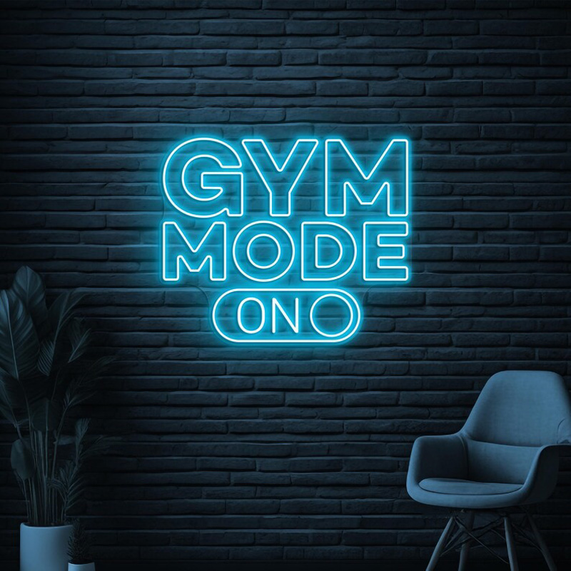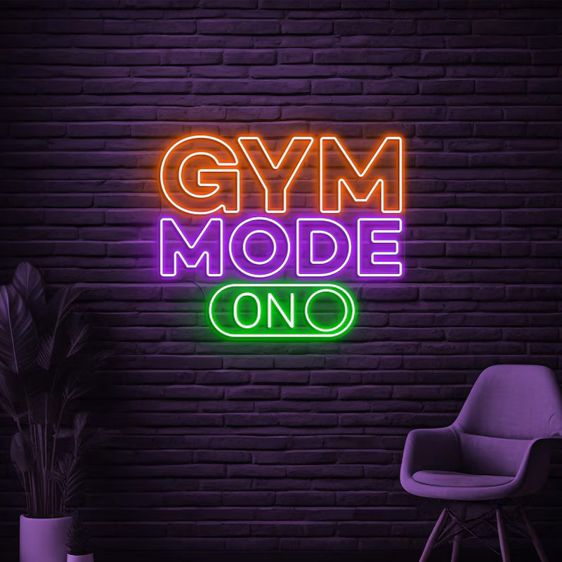 استفاده کردن از جملاتی مثل “No Pain No Gain” یا “Push Harder” وقتی با نور قرمز و یا آبی نئون نمایش داده شوند، انرژی بصری فوقالعادهای به محیط مورداستفاده میدهند.
