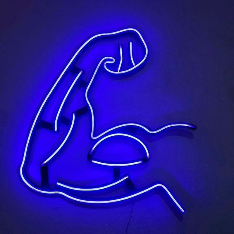 استفاده کردن از جملاتی مثل “No Pain No Gain” یا “Push Harder” وقتی با نور قرمز و یا آبی نئون نمایش داده شوند، انرژی بصری فوقالعادهای به محیط مورداستفاده میدهند.