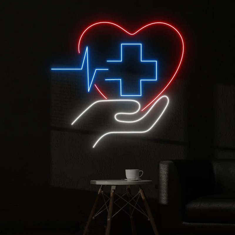 استفاده از نئونهای رنگ سفید و یا آبی ملایم برای تابلو مطب، نور پسزمینه لوگو و یا طراحی بخش پذیرش باعث میشود محیط آرام و لوکس بهنظر برسد.