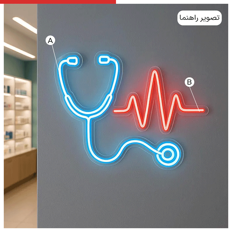 استفاده از نئونهای رنگ سفید و یا آبی ملایم برای تابلو مطب، نور پسزمینه لوگو و یا طراحی بخش پذیرش باعث میشود محیط آرام و لوکس بهنظر برسد.