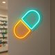استفاده از نئونهای رنگ سفید و یا آبی ملایم برای تابلو مطب، نور پسزمینه لوگو و یا طراحی بخش پذیرش باعث میشود محیط آرام و لوکس بهنظر برسد.