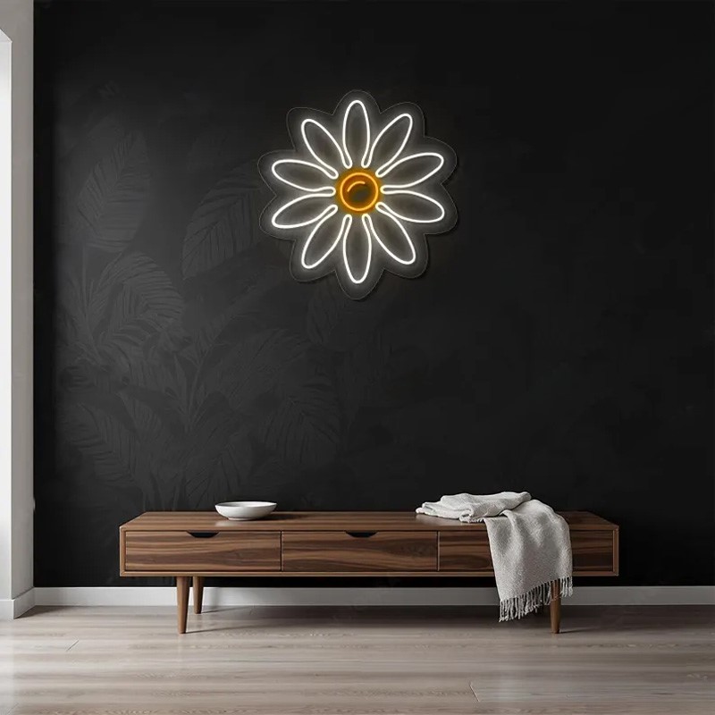 استفاده کردن از نور نئون فلکسی با انواع رنگهای گرم و یا سبز لطیف در ترکیب با گلها، حس آرامش و تازگی را چندبرابر میکند.