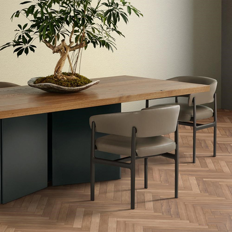 پایهها و بدنه صندلی ممکن است از چوب طبیعی، فلز، پلاستیک فشرده و یا ترکیبی از این متریالها طراحی و ساخته شوند. نشیمن و پشتی نیز با روکشهای پارچهای، چرم طبیعی یا چرم مصنوعی پوشانده میشود. روکش چرم مصنوعی مقاومت بسیار خوبی در برابر انواع لکه و رطوبت دارد، در حالی که روکش پارچه تنوع بیشتری در رنگ و بافت ارائه میدهد. استفاده از فوم با چگالی مناسب در نشیمن نیز باعث میشود صندلی در استفادههای طولانیمدت حالت اولیه خود را حفظ کند.