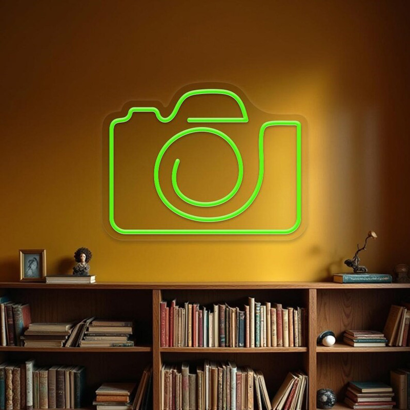 نصب نئون فلکسی با طرحهایی مثل نام برند، شعار و یا اسم آتلیه به دیوار، هویت بصری استودیو را تقویت میکند.