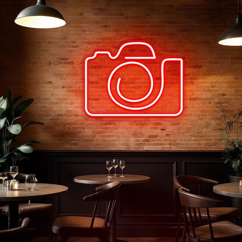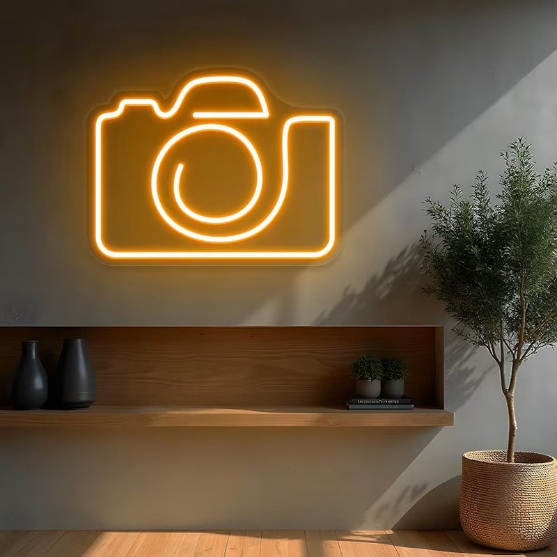 نصب نئون فلکسی با طرحهایی مثل نام برند، شعار و یا اسم آتلیه به دیوار، هویت بصری استودیو را تقویت میکند.