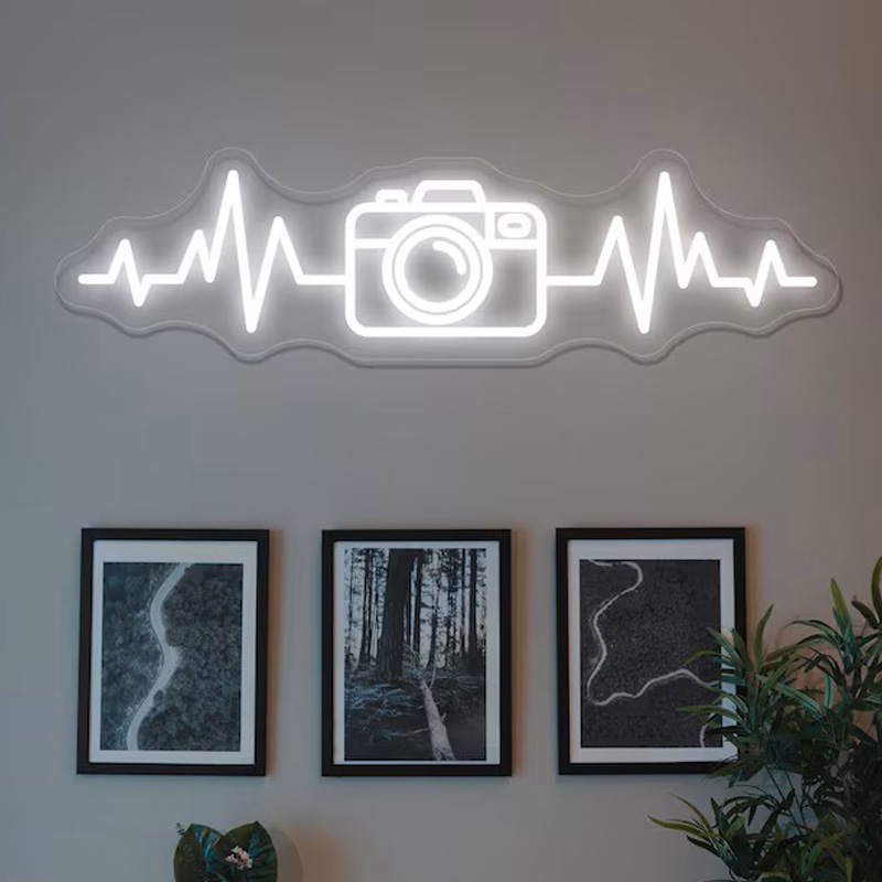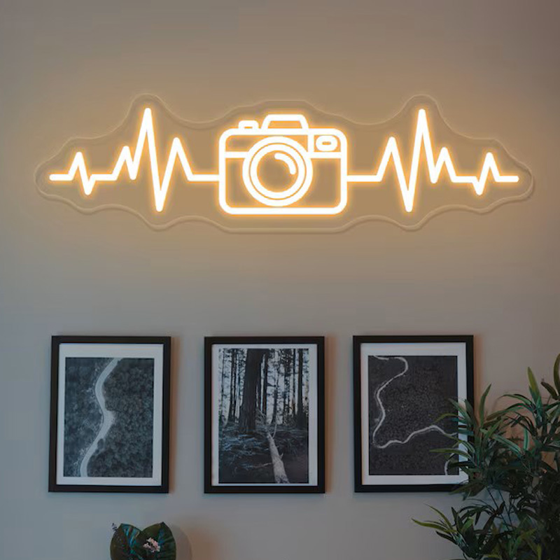 نصب نئون فلکسی با طرحهایی مثل نام برند، شعار و یا اسم آتلیه به دیوار، هویت بصری استودیو را تقویت میکند.