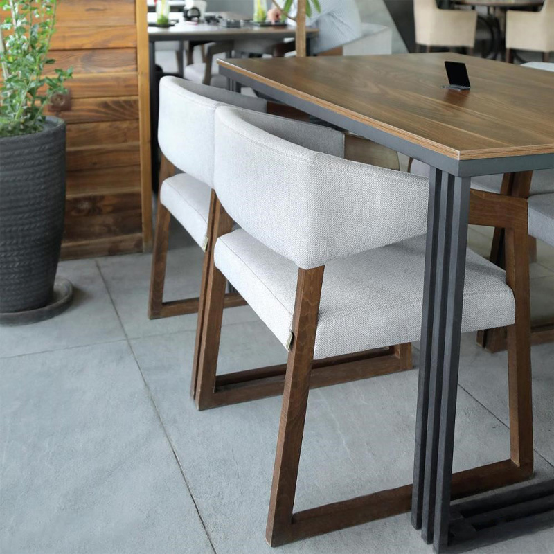 پایهها و بدنه صندلی ممکن است از چوب طبیعی، فلز، پلاستیک فشرده و یا ترکیبی از این متریالها طراحی و ساخته شوند. نشیمن و پشتی نیز با روکشهای پارچهای، چرم طبیعی یا چرم مصنوعی پوشانده میشود. روکش چرم مصنوعی مقاومت بسیار خوبی در برابر انواع لکه و رطوبت دارد، در حالی که روکش پارچه تنوع بیشتری در رنگ و بافت ارائه میدهد. استفاده از فوم با چگالی مناسب در نشیمن نیز باعث میشود صندلی در استفادههای طولانیمدت حالت اولیه خود را حفظ کند.