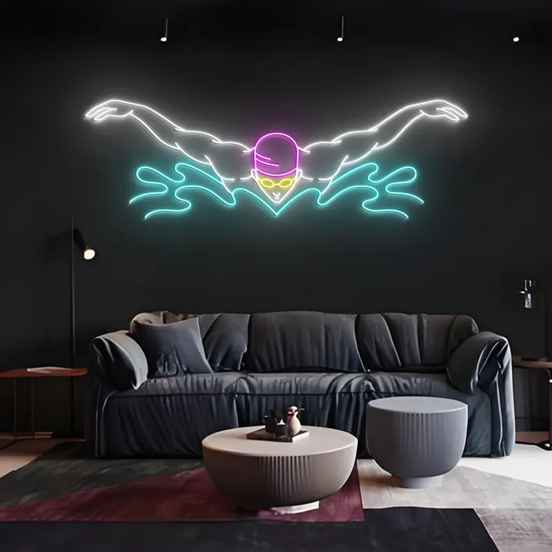 جملاتی مثل “Never Give Up”، “Stronger Every Day” یا “Focus & Fight” با استفاده از نور نئونی تأثیر بسیار زیادی بر روی ذهن و انگیزه ورزشکاران میگذارند.