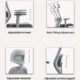 قابلیت تنظیم پشتی و نشیمنگاه برای تطبیق با انحنای طبیعی ستون فقرات و فراهم کردن حمایت مناسب از کمر و پشت بسیار مهم است. برخی مدلها دارای پشتیهای مشبک برای افزایش جریان هوا و کاهش تعریق هستند.