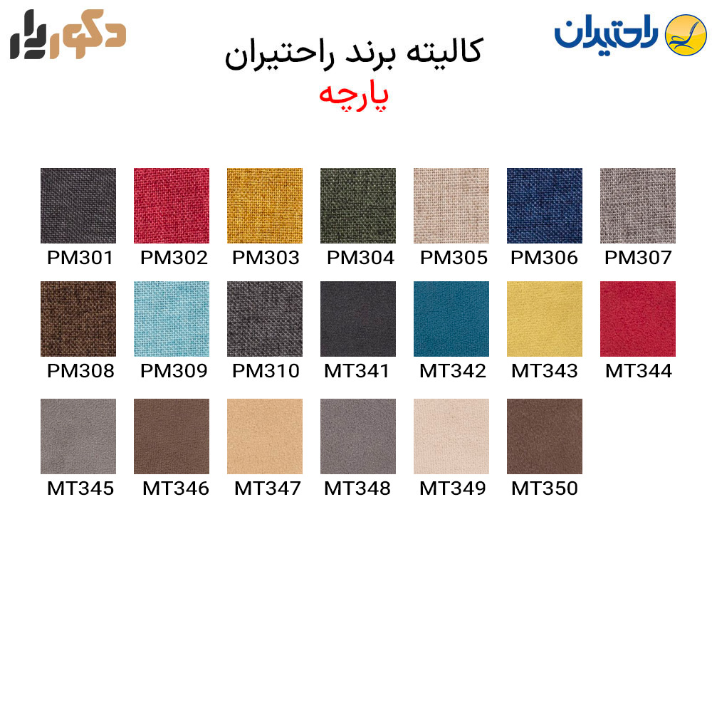 محصولات راحتیران به ۸ گروه اصلی تقسیم می گردد: ۱-مبلمان اداری ۲-صندلی های مدیریتی و کارشناسی ۳-صندلی های اپراتوری ۴- صندلی های آزمایشگاهی و کارگاهی ۵-صندلی های رستورانی و آشپزخانه ۶-صندلی های کودک و نوجوان ۷-میزهای جلو مبلی و نهار خوری ۸-صندلی های انتظار و آموزشی محصولات راحتیران (راحت ترین در ایران) را میتوانید از فروشگاه اینترنتی دکوریار با قیمت کارخانه و تخفیف ویژه تهیه بفرمایید . همچنین راحتیران جز برند های ویژه مجموعه دکوریار میباشد که این موضوع برای شما این امکان را ایجاد میکند که به صورت تخصصی مشاوره دریافت کنید .
