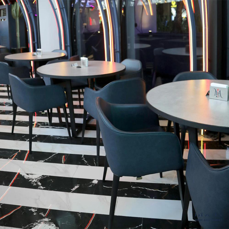 پایهها و بدنه صندلی ممکن است از چوب طبیعی، فلز، پلاستیک فشرده و یا ترکیبی از این متریالها طراحی و ساخته شوند. نشیمن و پشتی نیز با روکشهای پارچهای، چرم طبیعی یا چرم مصنوعی پوشانده میشود. روکش چرم مصنوعی مقاومت بسیار خوبی در برابر انواع لکه و رطوبت دارد، در حالی که روکش پارچه تنوع بیشتری در رنگ و بافت ارائه میدهد. استفاده از فوم با چگالی مناسب در نشیمن نیز باعث میشود صندلی در استفادههای طولانیمدت حالت اولیه خود را حفظ کند.